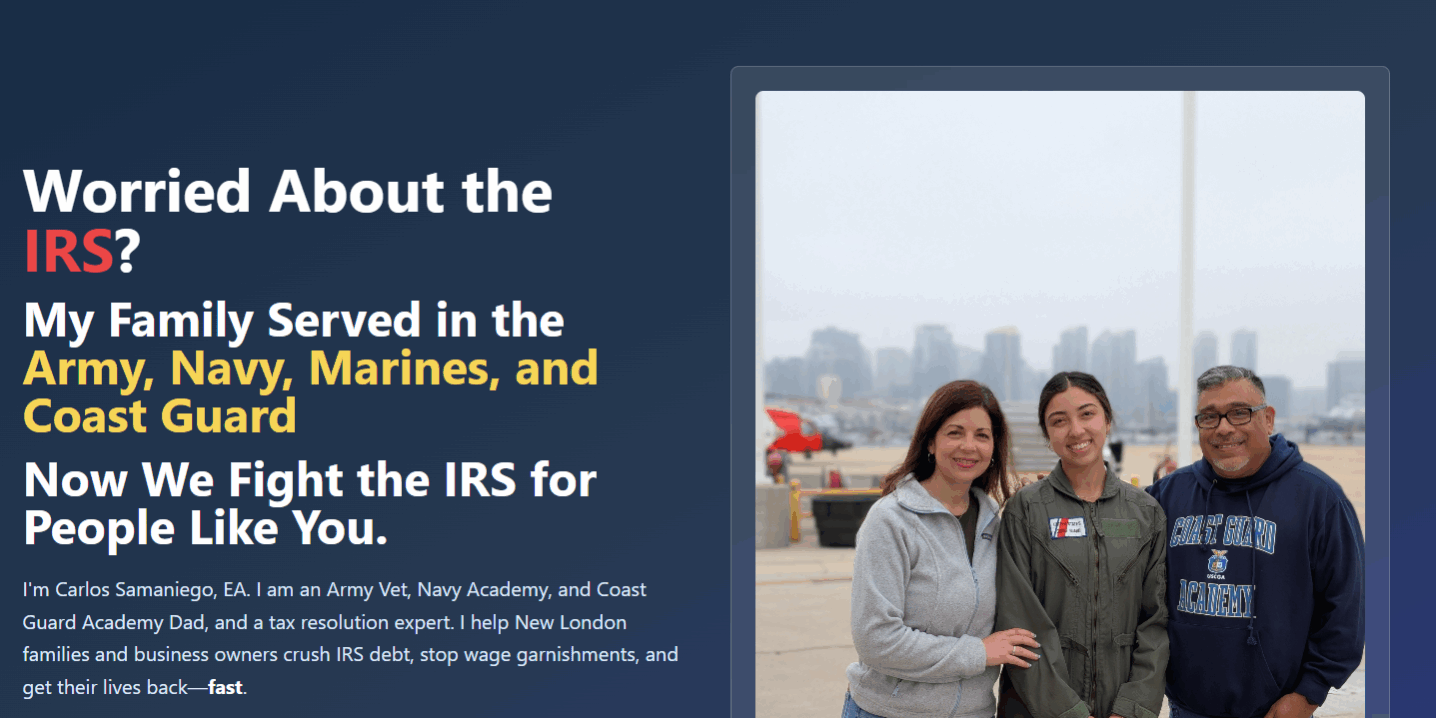 Carlos launched NewLondonTaxVet.com to serve the entire New London–Boston corridor, including military towns, veteran communities, and small business owners under pressure.